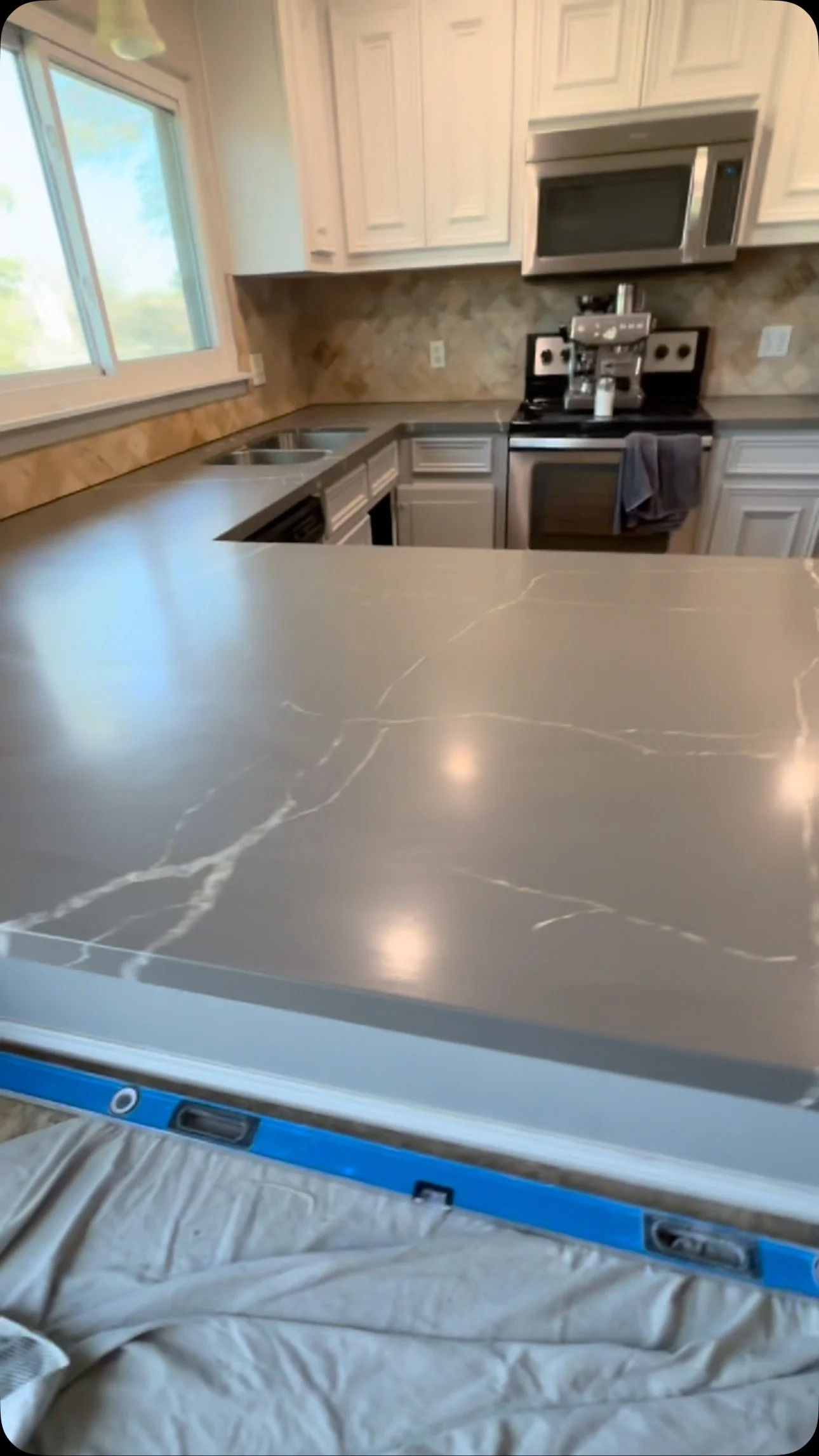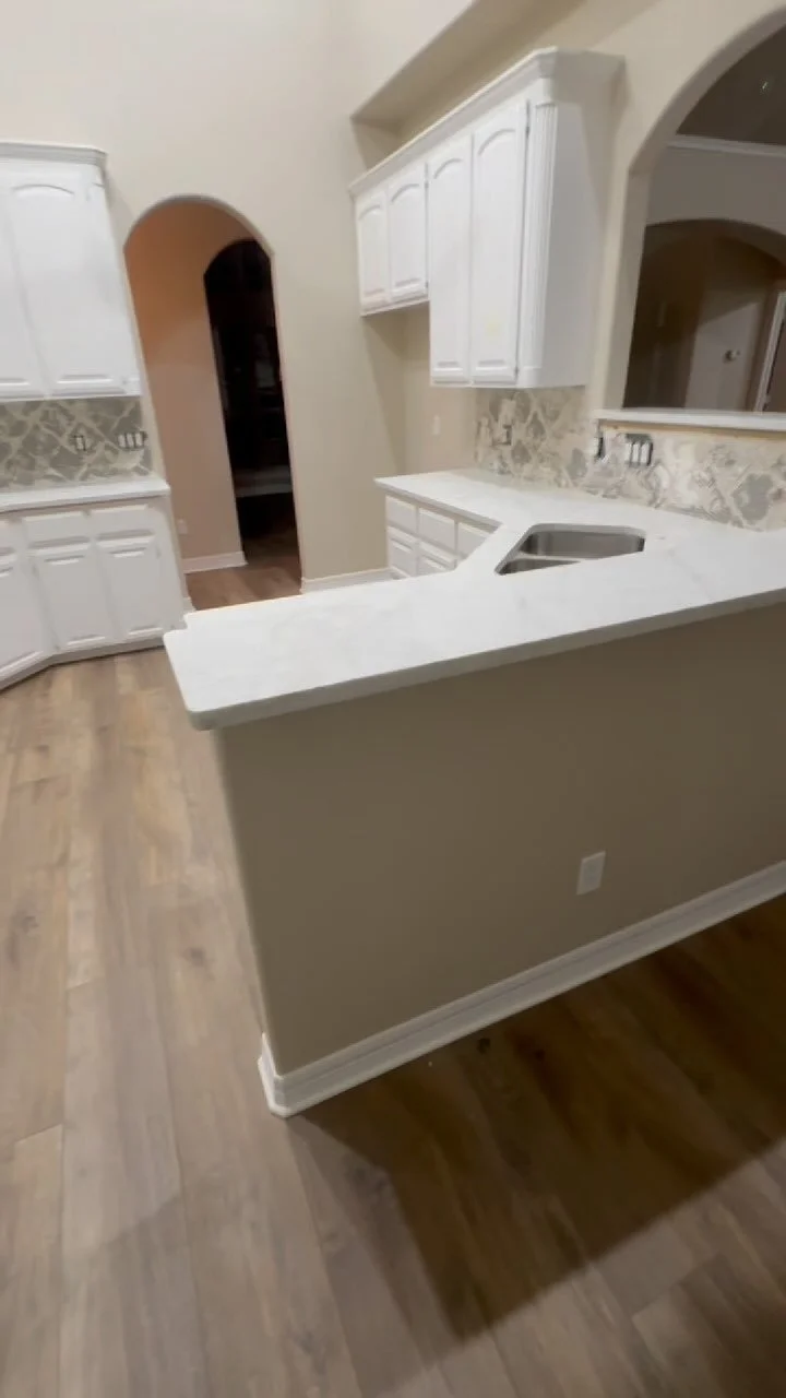 Bianco Carrara Quartz and new kitchen flooring.